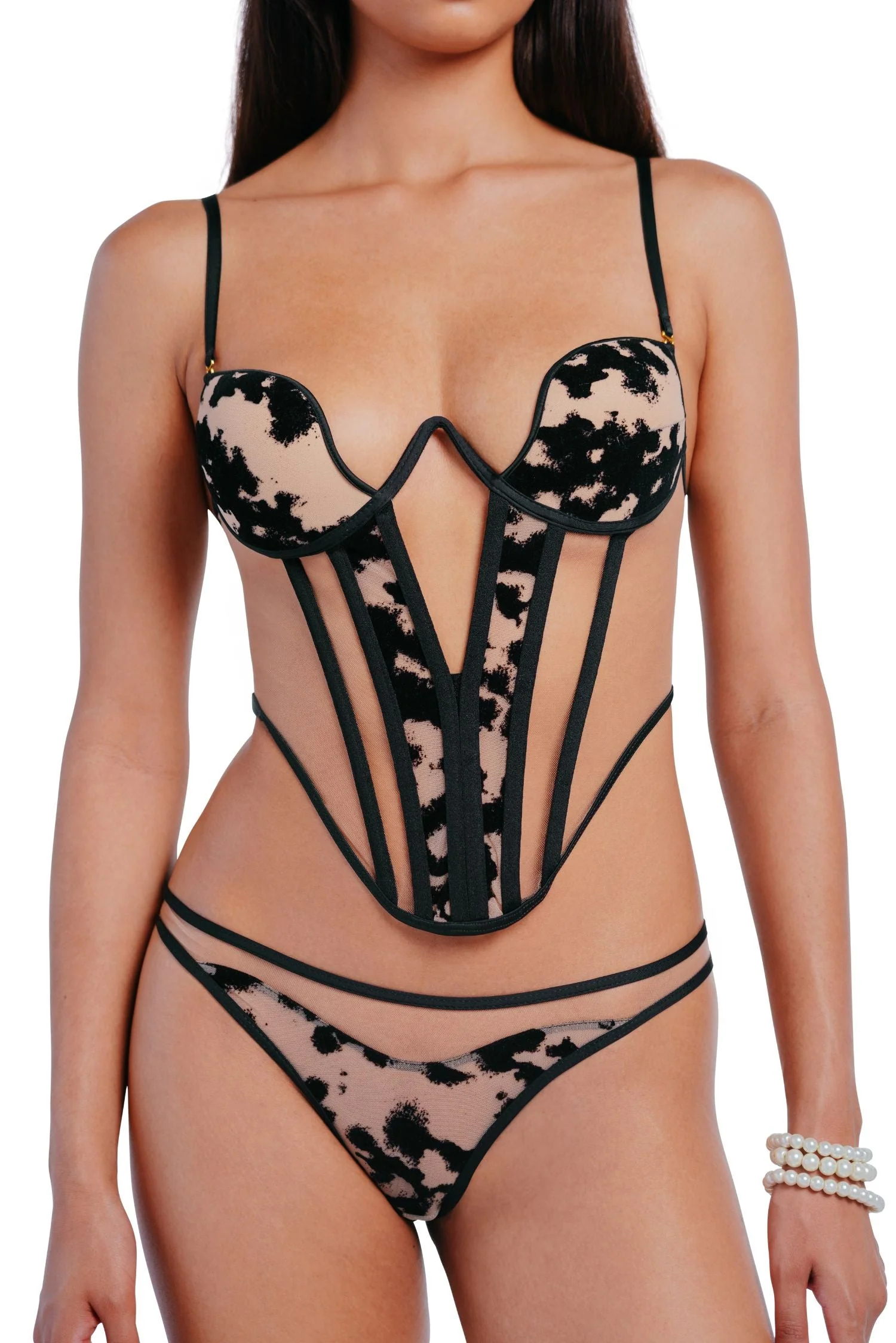 Meet the unique Harlow One Corset - a combination of classic elegance with a modern silhouette-modeling cut. This carefully designed women's corset with underwire is the essence of style, comfort and sensuality. Made of the highest quality materials, it combines flocked fabric with a delicate velvet pattern that catches the eye and adds a luxurious touch.